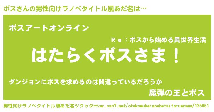 | ヒーロー風カッコイイあだ名 | 『スーパーボス』『仮面ボスダー』 |