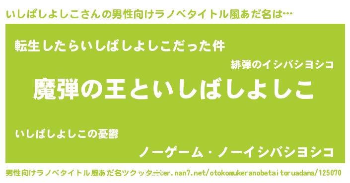 | 女子向けラノベタイトル風あだ名 | 『いしばしよしこが死なない童話 林檎のいしばしよしこの診療簿』 |