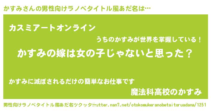 | 女子向けラノベタイトル風あだ名 | 『かすみ様がみてる』 |
