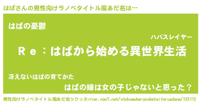 | 女子向けラノベタイトル風あだ名 | 『闇のはば』『はば様がみてる』 |