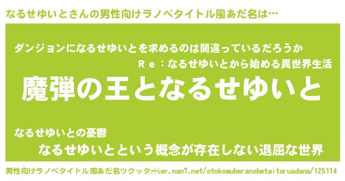 | 伝説のあだ名 | 『孤高の僧侶なるせゆいと』 |