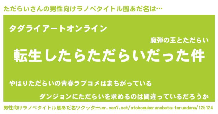 | ヒーロー風カッコイイあだ名 | 『スーパータダライ』『天弓騎士タダ』 |
