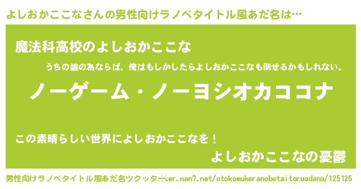 | 女子向けラノベタイトル風あだ名 | 『死神よしおかここなの再婚』 |