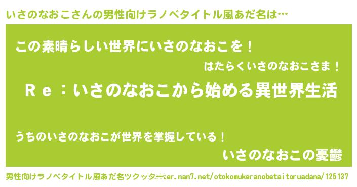 | 女子向けラノベタイトル風あだ名 | 『闇のいさのなおこ』 |