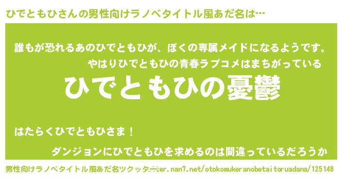 | 女子向けラノベタイトル風あだ名 | 『ひでともひ姫と円卓の騎士』 |