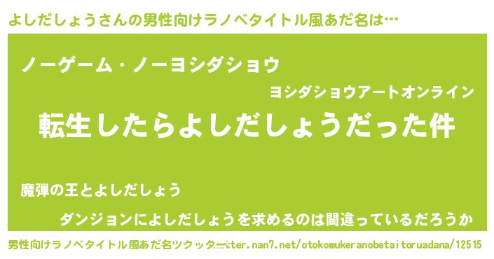 | ヒーロー風カッコイイあだ名 | 『慈愛の使者よしだしょう』 |