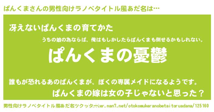 | 胡散臭い通販商品みたいなあだ名 | 『必ず成功する水晶球…その名も「ぱんくま」』 |