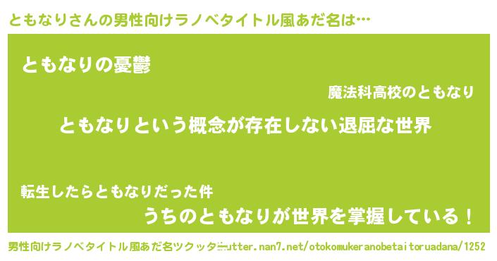 ともなりさんの男性向けラノベタイトル風あだ名をツクッター!