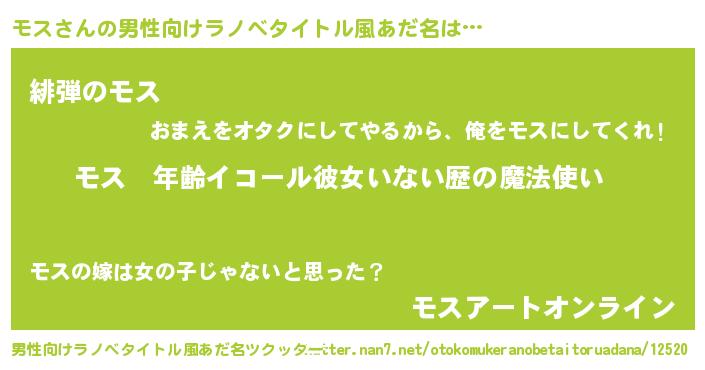 | 女子向けラノベタイトル風あだ名 | 『モスの玉の輿計画!』『モス様がみてる』 |