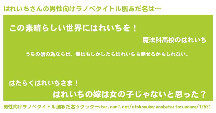 | 女子向けラノベタイトル風あだ名 | 『はれいちの婚約者』 |