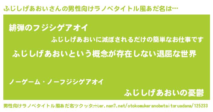 | ヘコむあだ名 | 『ふじしげあおい(苦笑)』『ふじにー』 |