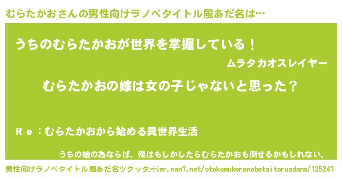 | 女子向けラノベタイトル風あだ名 | 『むらたかお様がみてる』 |