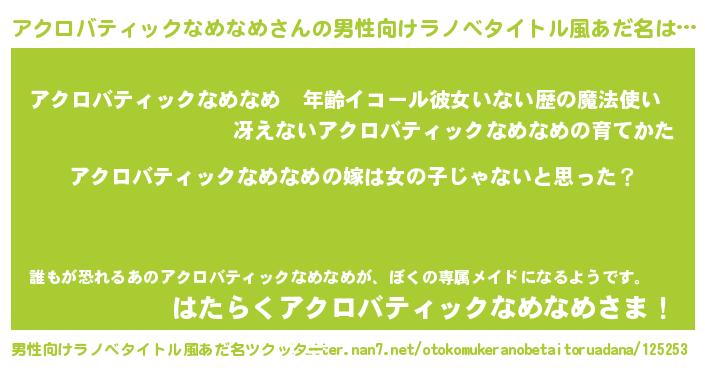 | 女子向けラノベタイトル風あだ名 | 『アクロバティックなめなめの卵を拾いまして』 |