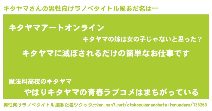 | 胡散臭い通販商品みたいなあだ名 | 『モテモテ間違いなし霊験あらたかなお札…その名も「キタヤマ」』 |