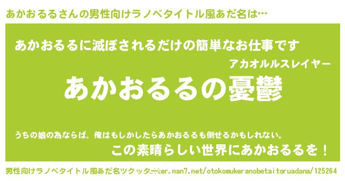 | 女子向けラノベタイトル風あだ名 | 『(仮)あかおるるのやんごとなき事情』 |