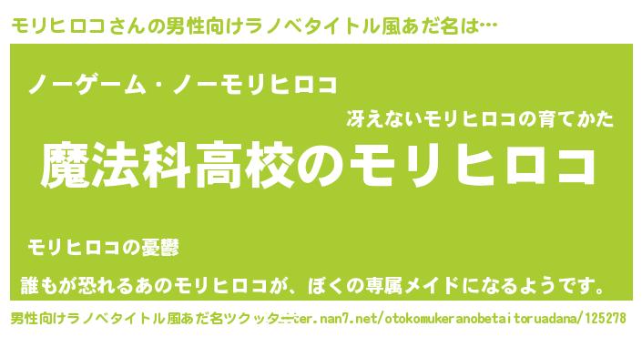 | 女子向けラノベタイトル風あだ名 | 『モリヒロコなんてお断りですっ。』 |