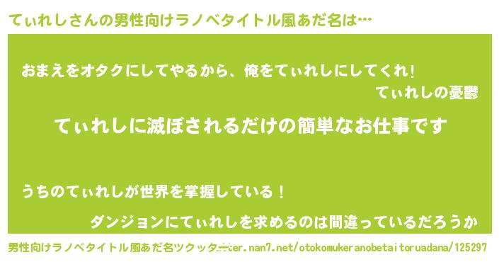 | ヒーロー風カッコイイあだ名 | 『天空の使者てぃれし』『魔戒騎士ティ』 |
