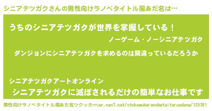 | 女子向けラノベタイトル風あだ名 | 『シニアテツガクは平凡を望む』 |