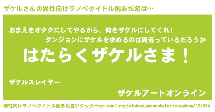 | 女子向けラノベタイトル風あだ名 | 『首の姫と首なしザケル』『ザケル恋絵巻』 |