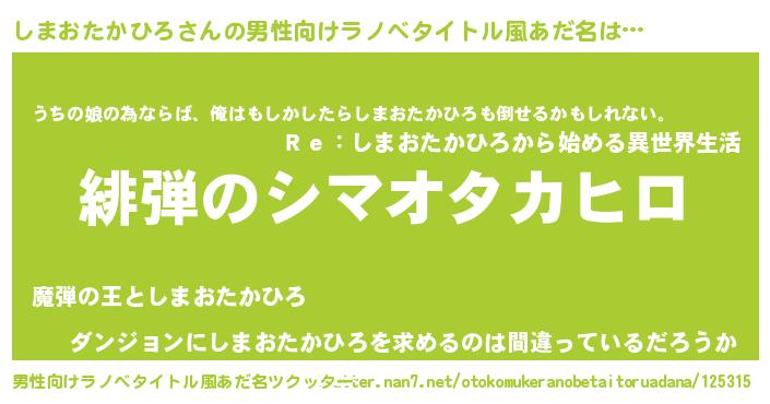 | 意味不明あだ名 | 『しまおたかひろフォーエバー』 |