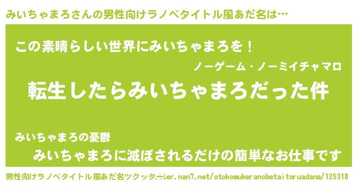 | ヒーロー風カッコイイあだ名 | 『仮面ミイダー』『スーパーミイチャマロ』 |
