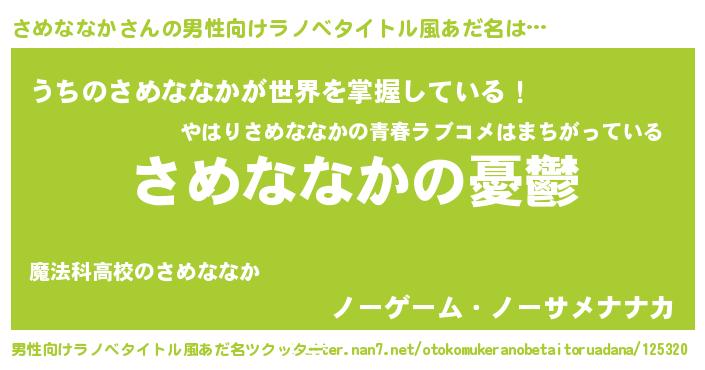 | 女子向けラノベタイトル風あだ名 | 『(仮)さめななかのやんごとなき事情』 |