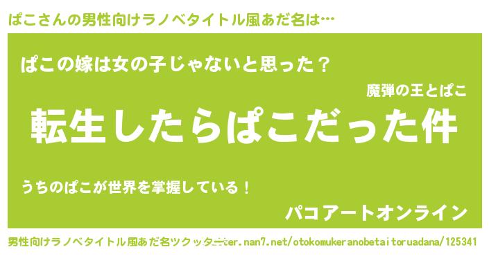 | 女子向けラノベタイトル風あだ名 | 『ぱこの玉の輿計画!』 |