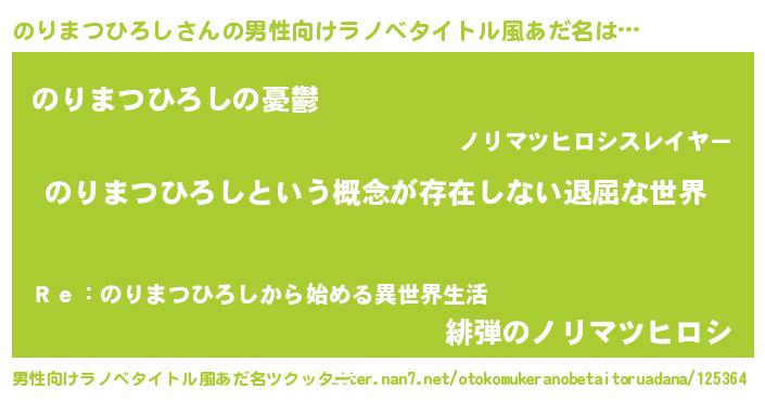 | 女子向けラノベタイトル風あだ名 | 『のりまつひろしの契約王妃』 |