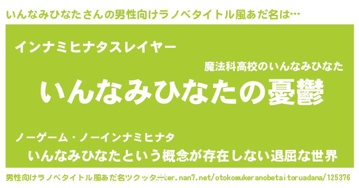 | 女子向けラノベタイトル風あだ名 | 『(仮)いんなみひなたのやんごとなき事情』 |
