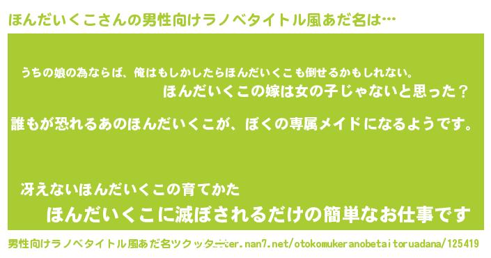 | 胡散臭い通販商品みたいなあだ名 | 『来世でも幸せになれる健康食品…その名も「ほんだいくこ」』 |