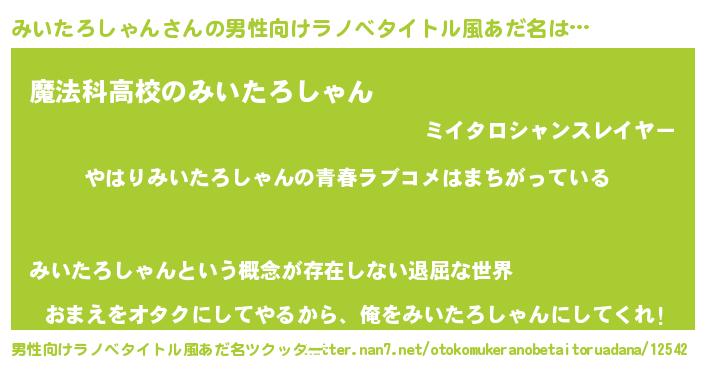 | 意味不明あだ名 | 『みいたろしゃんフォーエバー』 |
