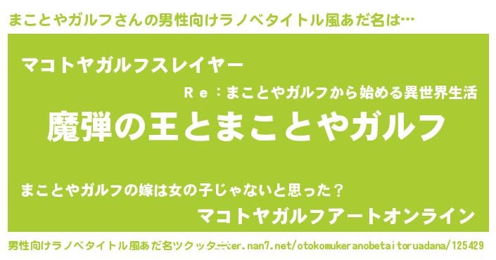 | 女子向けラノベタイトル風あだ名 | 『まことやガルフが死なない童話 林檎のまことやガルフの診療簿』 |
