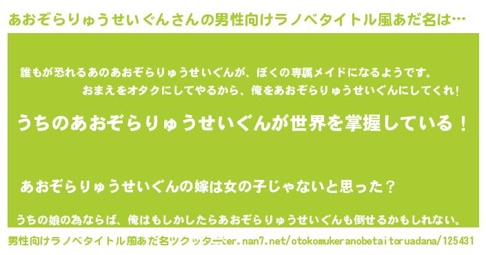 | ヒーロー風カッコイイあだ名 | 『ネオアオゾラリュウセイグン』 |