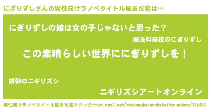 意味不明あだ名 | 『住所不定無職にぎりずし(89歳)』 |