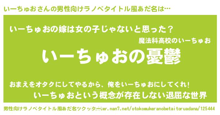 | 意味不明あだ名 | 『ペロリンいーちゅお』『自称いーちゅお』 |