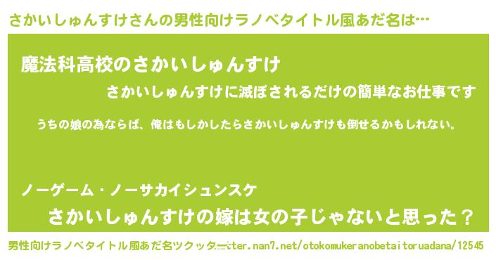 | ファンタジー風あだ名 | 『エターナルサカイシュンスケー』 |