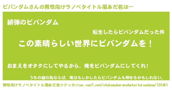 | 意味不明あだ名 | 『住所不定無職ビバンダム(77歳)』 |