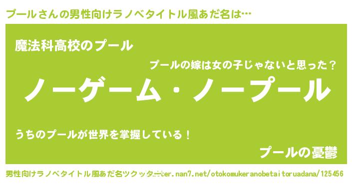 | ヒーロー風カッコイイあだ名 | 『天空の使者プール』『超時空戦士プール』 |