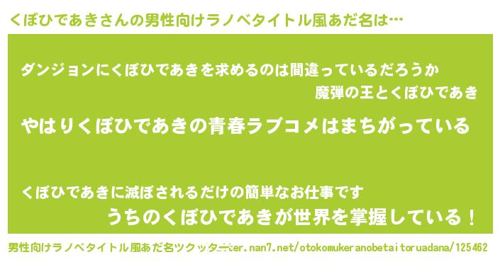 | 女子向けラノベタイトル風あだ名 | 『くぼひであきの雑貨屋さん』 |