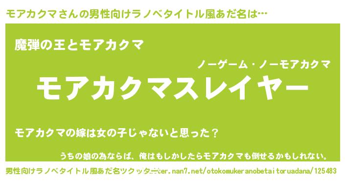| ヒーロー風カッコイイあだ名 | 『仮面モアダー』『愛の使者モアカクマ』 |