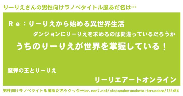 | 女子向けラノベタイトル風あだ名 | 『男装りーりえの憂鬱な任務』 |