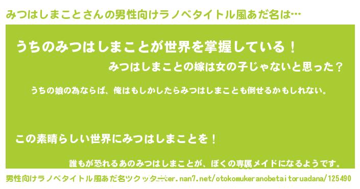 | 女子向けラノベタイトル風あだ名 | 『みつはしまこと伯爵の花嫁』 |