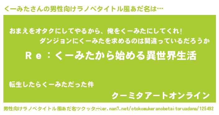 | 女子向けラノベタイトル風あだ名 | 『くーみたストレイドッグス』 |
