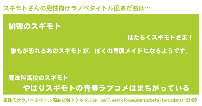 | ヒーロー風カッコイイあだ名 | 『ネオスギモト』『ウルトラスギモトマン』 |