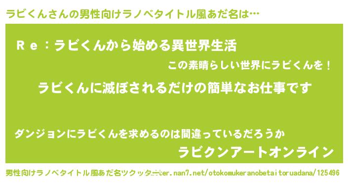 | 女子向けラノベタイトル風あだ名 | 『横柄ラビくんと宰相陛下』 |