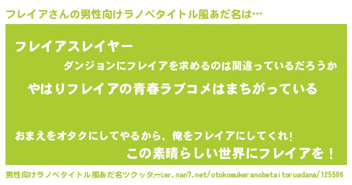 | 女子向けラノベタイトル風あだ名 | 『フレイアの雑貨屋さん』 |