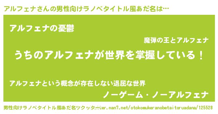 | 胡散臭い通販商品みたいなあだ名 | 『億万長者になれるブレスレット…その名も「アルフェナ」』 |