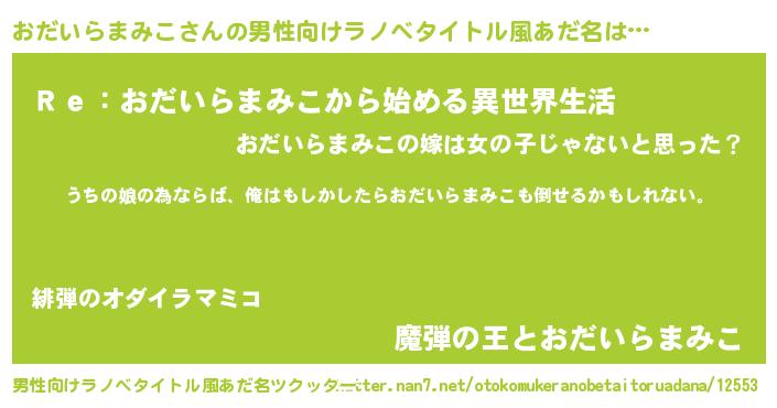 | 女子向けラノベタイトル風あだ名 | 『おだいらまみこの婚約者』 |