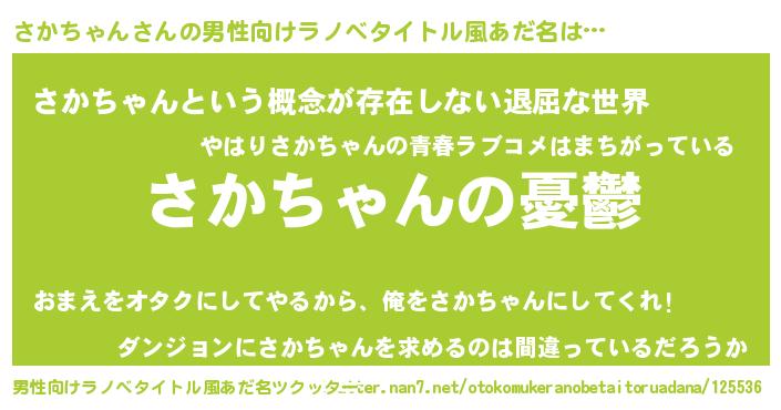 | 女子向けラノベタイトル風あだ名 | 『(仮)さかちゃんのやんごとなき事情』 |
