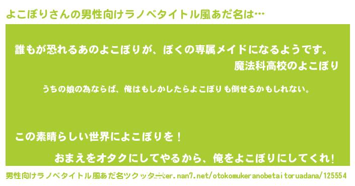 | 女子向けラノベタイトル風あだ名 | 『よこぼりの婚約者』『よこぼり恋絵巻』 |